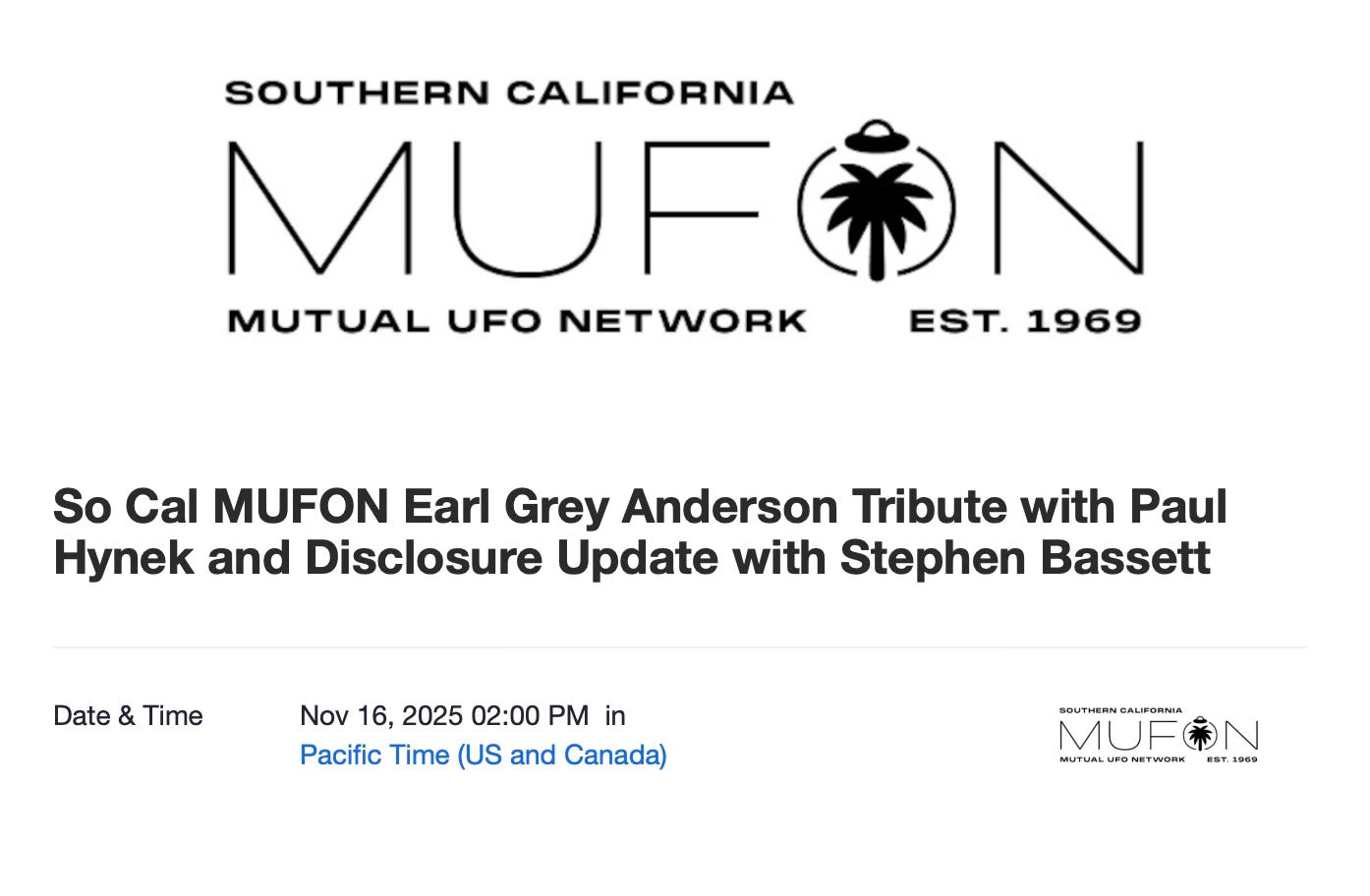 Here is the Link for SoCal’s MUFON’s Zoom Meeting
